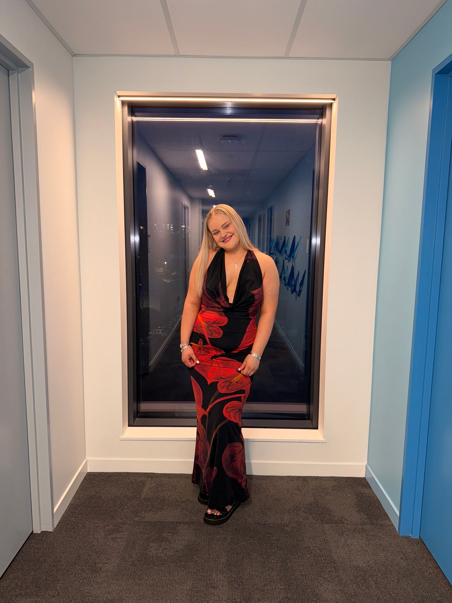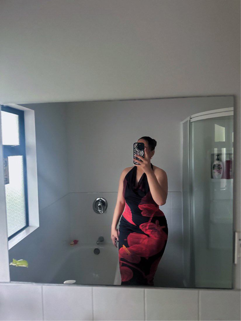 Elegant gown with halter neck and low back. Maxi length. Perfect for anything summer or formal.